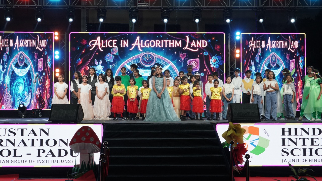 The highlight of the evening was the captivating musical and cultural production titled “Alice in Algorithm Land,” which beautifully blended imagination with modern themes of logic, innovation, and curiosity. The programme showcased the creativity, talent, and confidence of our students, leaving the audience thoroughly engaged and appreciative. The celebration concluded on a proud note, reflecting the spirit of excellence and unity that defines Hindustan International School, Padur.