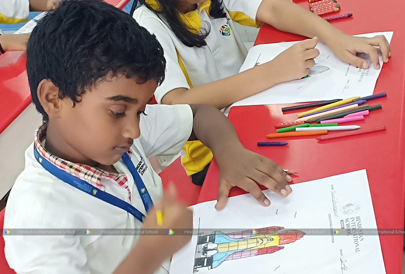 As a tribute to our former President Dr. APJ Abdul Kalam, Students of Classes I to V participated in colouring competition and classes VI to VIII participated in rocket making competition. Hence the day ended with an open thought shared to children” Look at the sky. We are not alone. The whole universe is friendly to us and conspires only to give the best to those who dream and work.”